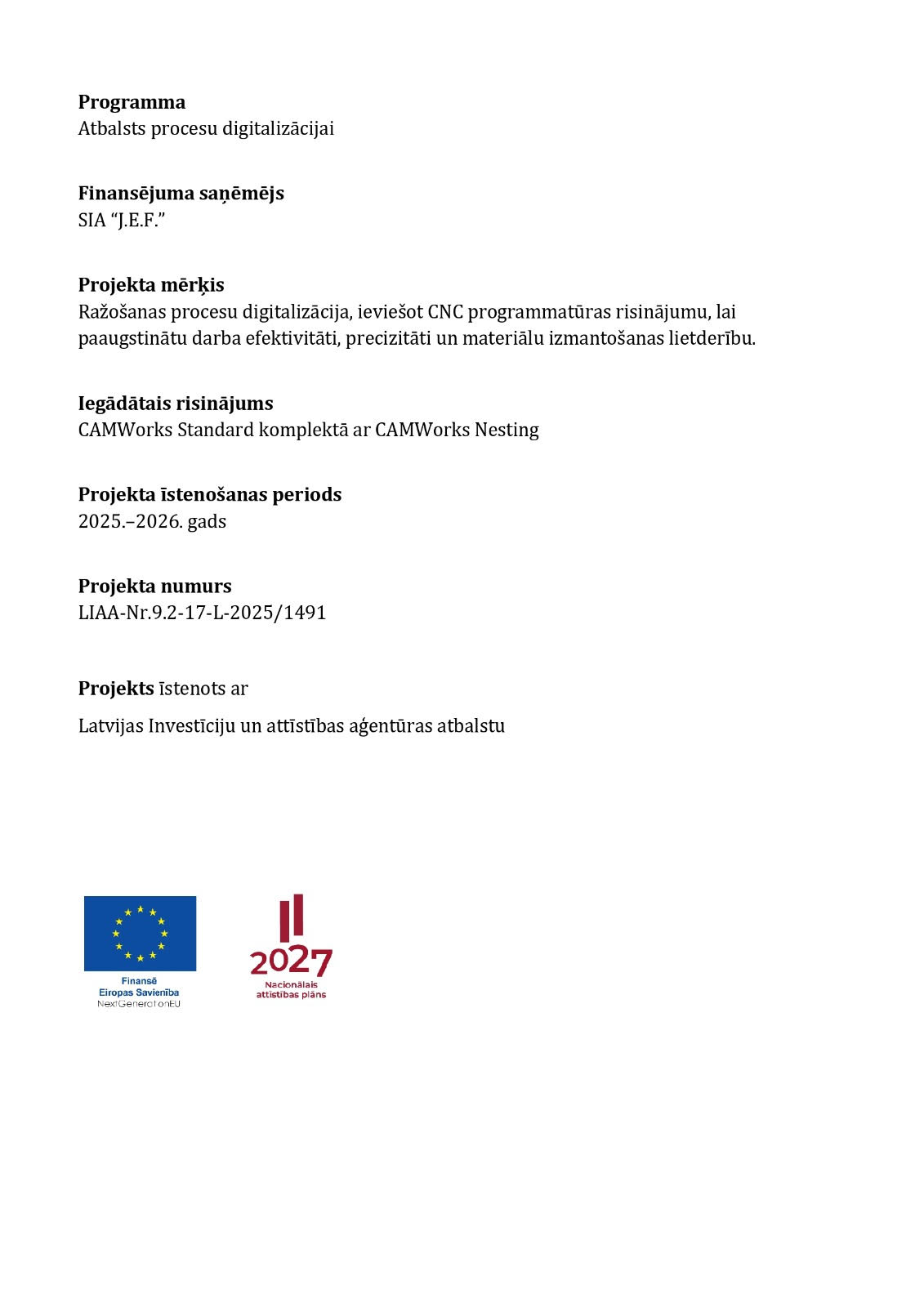 | Galdniecības darbu vadītājs: | Artis Lukstiņš | +371 26405300 | artis@jef.lv |
